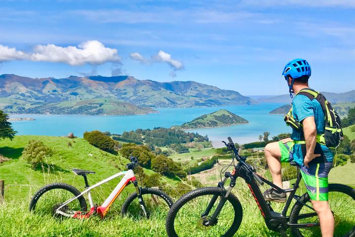 Ready? Let’s go! Time for a day of adventure- Get those legs spinning, soak in glorious views and gain a huge sense of achievement as you circumnavigate the ancient crater rim! Don’t worry about a thing as our latest model fleet of Scott and Trek Electric mountain bikes are the best in the business. The multiple pedal assist functions will have you whizzing around with ease with your knowledgeable local guide leading the way. All equipment is provided, just bring a sense of adventure and of course your camera, your guide will take photos for you! What a way to make the most of your time in beautiful Akaroa!